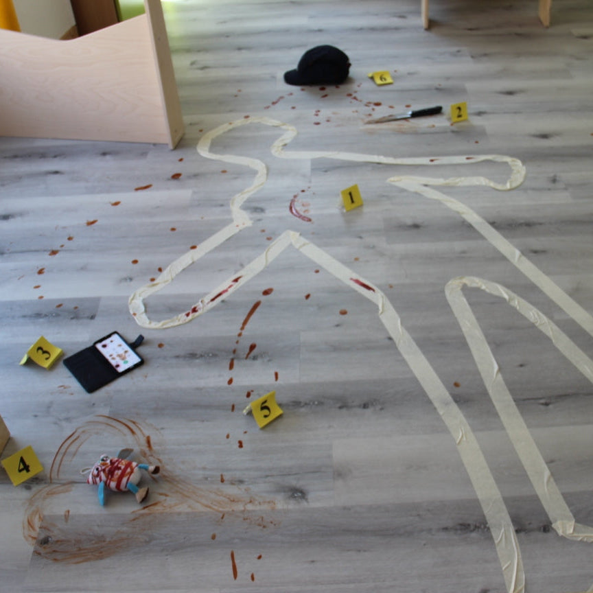 Voici quelques des scènes de crime que m'envoient les joueurs qui organisent des Murder Party à la maison. Ils sont tous plus imaginatifs les uns que les autres ! J'adore découvrir comment vous vous appropriez un jeu pour en faire une expérience unique. Bravo à tous pour votre créativité !